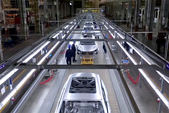 整个焊装车间支持柔性线的转化,通过智能化制造系统的精密控制,实现不同车型的夹具在20秒内进行切换,这种无缝切换保证了生产线可以同时生产4种不同车型。